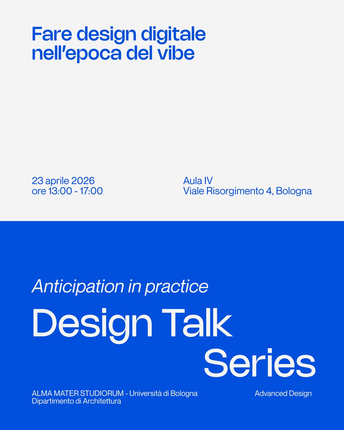 • Luogo: Aula IV Viale Risorgimento 4, Bologna