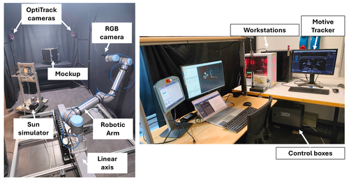 To address these limitations, the Microsatellites and Space Microsystems Laboratory conducts research on algorithm optimization for embedded deployment and uncertainty quantification. In 2025, the laboratory commissioned a Hardware-in-the-Loop (HIL) testbed for on-ground validation, featuring a 7 degrees-of-freedom robotic arm, a sun simulator, and an OptiTrack motion capture system, enabling automated generation of real HIL image datasets.