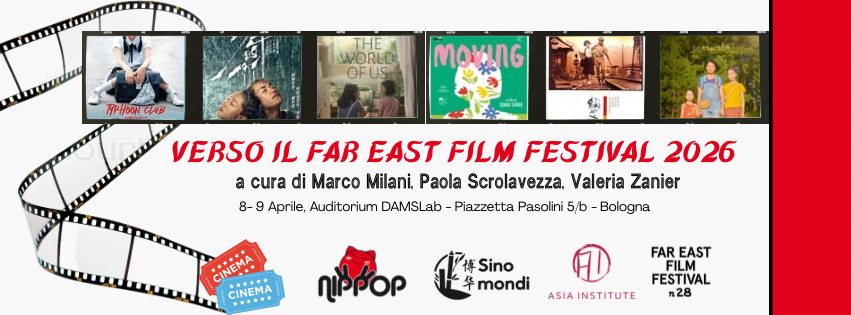 In occasione della prossima edizione del Far East Film Festival di Udine, dalla sinergia fra le associazioni Asia Institute, NipPop e Sinomondi arriva a Bologna una speciale anteprima che vuole valorizzare il successo crescente delle produzioni cinematografiche sinofone, coreane e giapponesi a livello globale. Le proiezioni saranno accompagnate da Marco Milani, Clara Latorraca, Paola Scrolavezza, Marta Fanasca, Valeria Zanier, Clara Longhi.