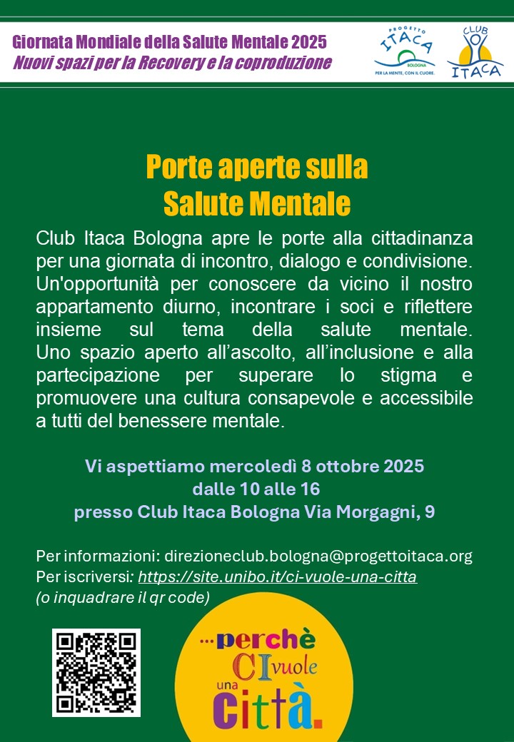 In occasione del Mese della Salute Mentale, Club Itaca Bologna apre le porte alla cittadinanza con un Open Day dedicato alla scoperta della nostra realtà e alla condivisione di esperienze e prospettive.