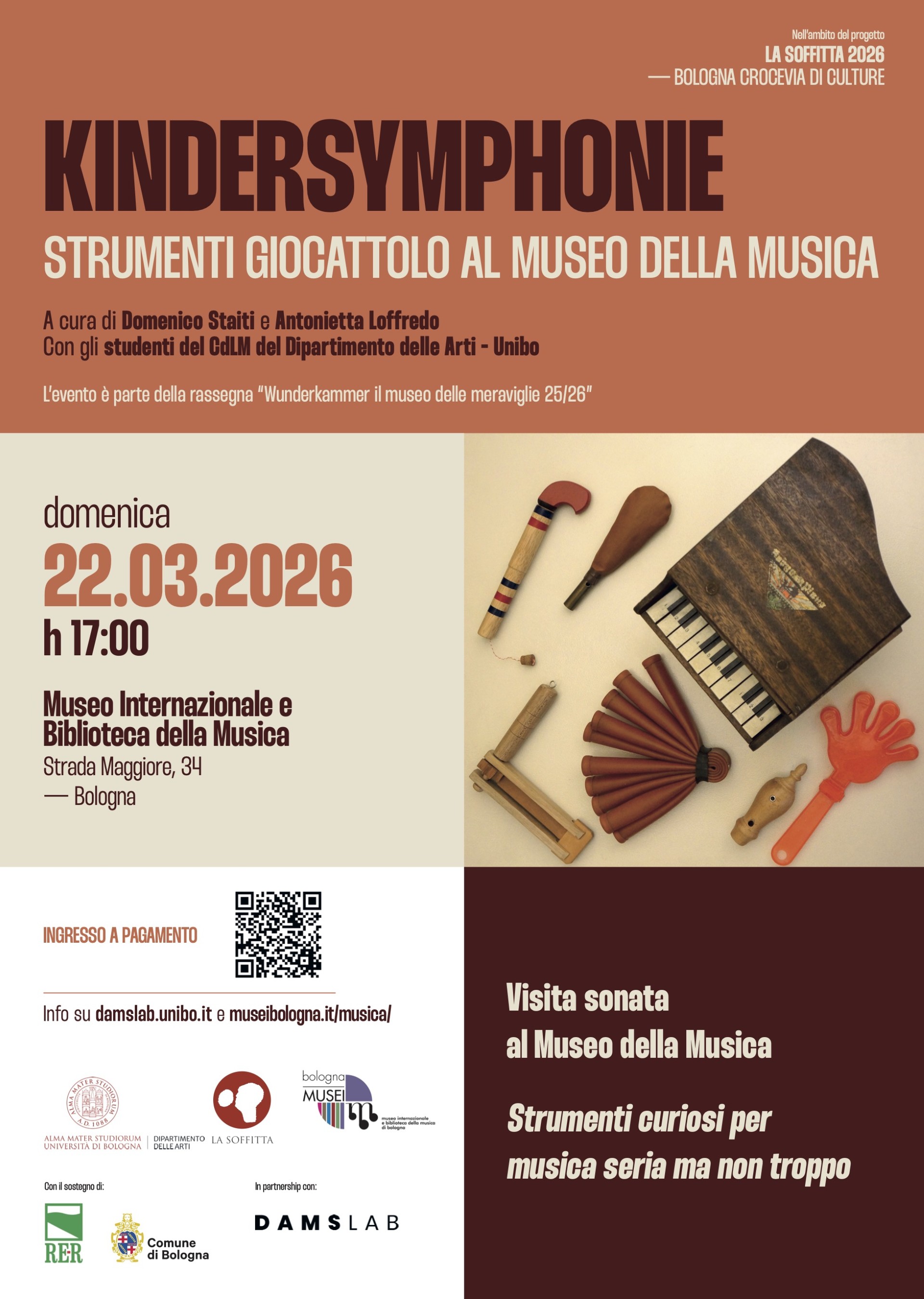 Dal soggiorno bolognese di Wolfgang Amadeus Mozart al Treno di John Cage, un sottile filo rosso lega la città di Bologna a storie curiose di strumenti probabili e improbabili, per musica seria ma non troppo, svelate al pubblico in un concerto itinerante tra le sale del Museo della Musica per la rassegna Wunderkammer il museo delle meraviglie 25/26.