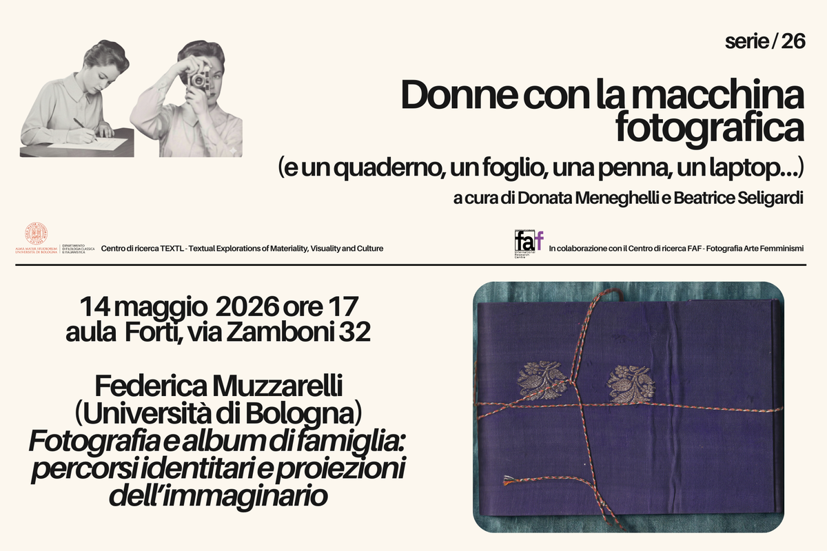 Nel quinto e ultimo incontro del ciclo seminariale "Donne con la macchina fotografica (e un quaderno, un foglio, una penna, un laptop...)", Federica Muzzarelli (Università di Bologna) ci parlerà di fotografia e album di famiglia. Nell’uso delle immagini fotografiche, prelevate come ready-made o realizzate in modo autoriale, e contenute dentro ad album, scrapbook, photobook o diari per lo più in combinazione o montaggio sia con altro materiale fotografico che di diversa natura come il disegno, la pittura e la scrittura, già a partire dalla seconda metà dell’Ottocento si è sperimentata una pratica definibile come femminista e di resistenza. E ciò a prescindere che l’esperienza avvenisse al di fuori, in parallelo, o all’interno della storia dell’arte ufficiale, tracciando le tappe di un percorso che racconta una delle tante facce della fotografia: l’essere stata un veicolo privilegiato per raccogliere esigenze di tipo autobiografico, personale e di narrazione in prima persona, come si è verificato ogni volta che l’arte e il processo creativo si sono mescolati in modo inestricabile alla dimensione esistenziale e a pressanti esigenze psicologiche.