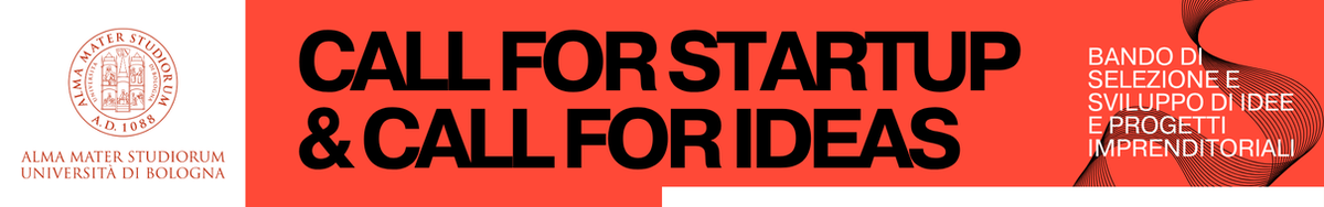 Il bando Call for Startup & Call for Ideas seleziona i migliori progetti imprenditoriali di studenti e laureati dell'Università di Bologna. Essere selezionati dà accesso a un percorso per l’acquisizione di conoscenze e competenze strategiche sia nel mondo del lavoro, sia per sviluppare un progetto imprenditoriale. Sarai accompaganto/a attraverso formazione, mentoring, agevolazioni economiche, spazi e attrezzature che potrai usare per sviluppare la tua idea.
