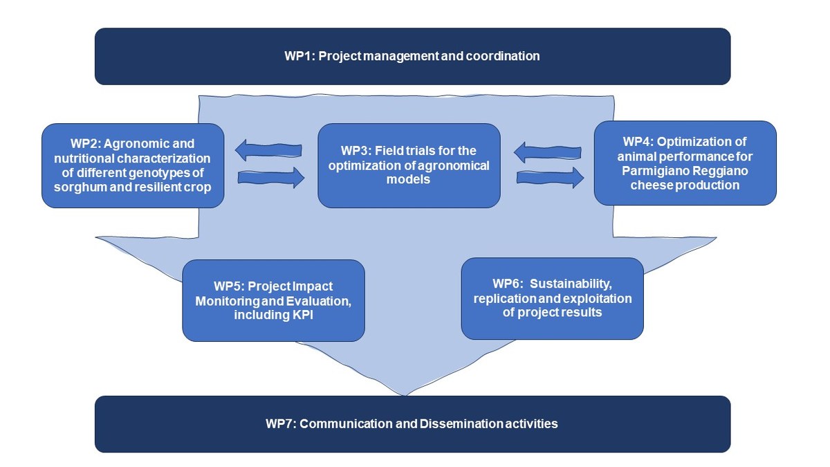 - WP4 aims to define and set up optimized dietary rations with alternative crops (sorghum, wheat, millet and sunflower), considering the animal response and the milk cheese making properties and production. Results will be used to transfer the innovation to the Parmigiano Reggiano supply chain.