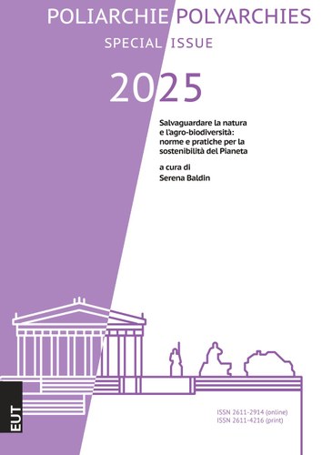 È disponibile online il numero monografico della rivista Poliarchie/Polyarchies intitolato “Salvaguardare la natura e l’agro-biodiversità: norme e pratiche per la sostenibilità del Pianeta”, a cura di Serena Baldin (2025), coordinatrice dell'unità di ricerca dell'Università di Trieste. Il volume, pubblicato da EUT Edizioni Università di Trieste, raccoglie i contributi di alcuni partecipanti ai due seminari LUMEN organizzati nella primavera del 2025 dall’Unità di ricerca UNITS.