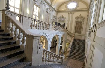 This elegant Renaissance building is located in Via Barberia 4. Designed by Giovanni Beroaldo on the ruins of previous buildings, it was enriched over the centuries by the frescoes of Rolli and Caccioli, and by the grandiose Baroque staircase created by Gian Giacomo Monti. The main floor has frescoes completed by Domenico Maria Canuti with stucco work (1682) by Giovanni Francesco Bezzi; Marcantonio Franceschini and Enrico Haffner (1682); and by the brothers Giovanni and Antonio Rolli (1683) including the grand salon, which they worked in during 1687 but completed (1709) by Giuseppe Antonio Caccioli.