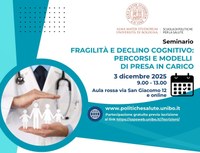 La Scuola Superiore di Politiche per la Salute (C.RI.F.S.P) dell'Alma Mater Studiorum - Università di Bologna propone il seminario "Fragilità e declino cognitivo: percorsi e modelli di presa in carico" che si terrà il 3 dicembre 2025 alle ore 9.
