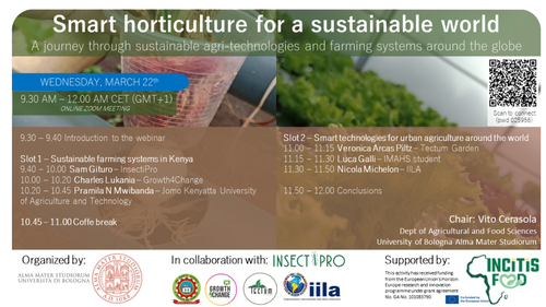 A day of discussion and discovery for agriculture students at Alma Mater Studiorum – University of Bologna, dedicated to sustainable and innovative horticulture in different contexts around the world. On March 22, 2023, agricultural entrepreneurs, researchers, students, and activists shared their experiences and visions on how smart horticulture can take shape from Kenya to Spain to Latin America. From insect farming to simplified hydroponics, from aquaponics to therapeutic horticulture: the publicly accessible webinar showed that smart horticulture can be not only a response to food security challenges, but also an opportunity for innovation and social inclusion, demonstrating that sustainability does not have a single path, but can be expressed in different concrete and creative solutions.