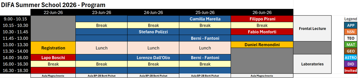 The program is articulated in front lectures in the form of seminars (1 hours each - including questions and discussions) and a series of special presentations aimed at providing the vision for the future developments of the experimental techniques discussed in the school. The lab sessions will be computational activities to get hands-on with the topics covered in the school. All attendants who will actively participate to the laboratory sessions of the school will be granted a certificate attendance to the School. For the detailed activities of the school, please check the detailed program.