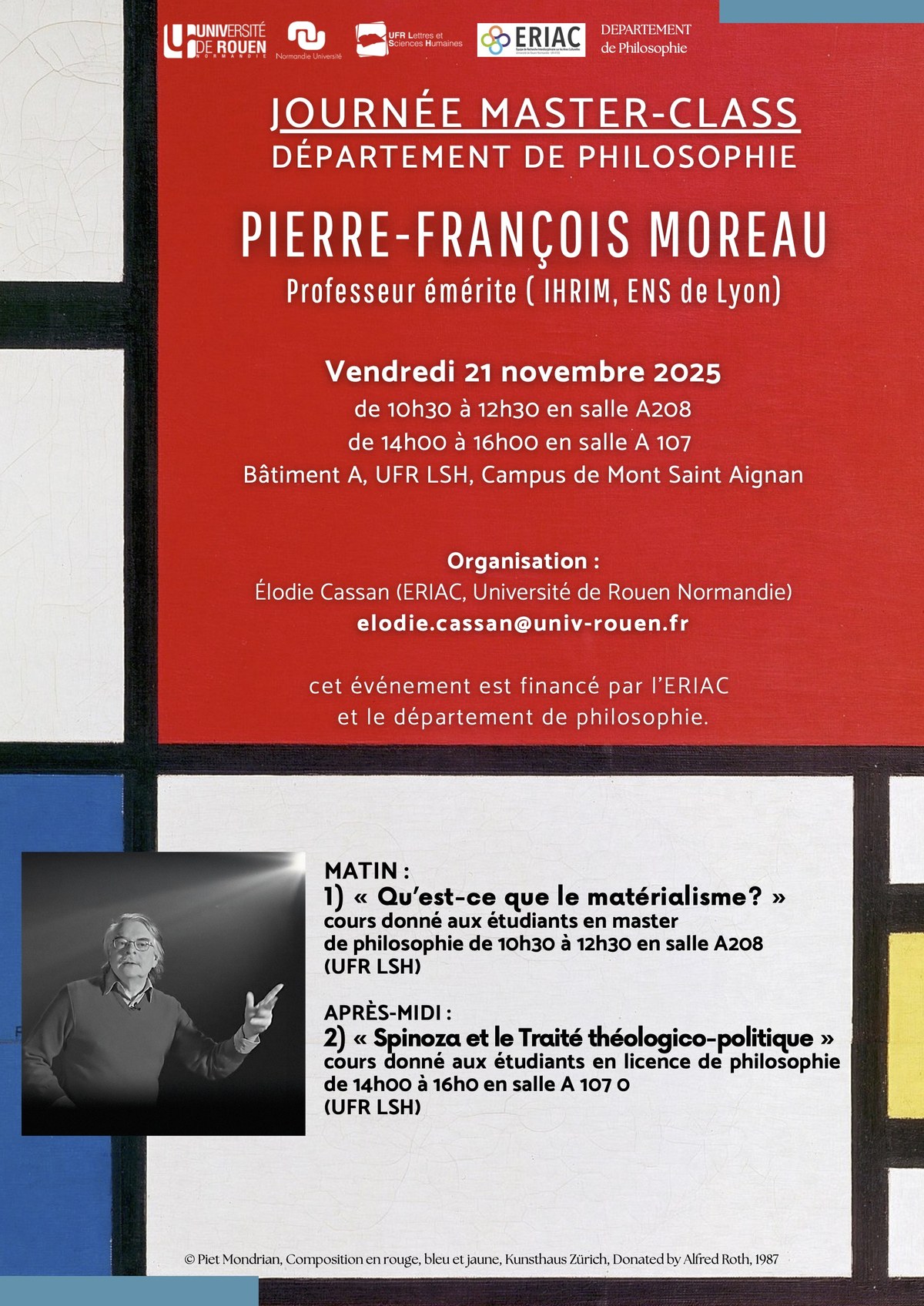Due conferenze di Pierre-François Moreau al Département de Philosophie de l'Université de Rouen-Normandie
