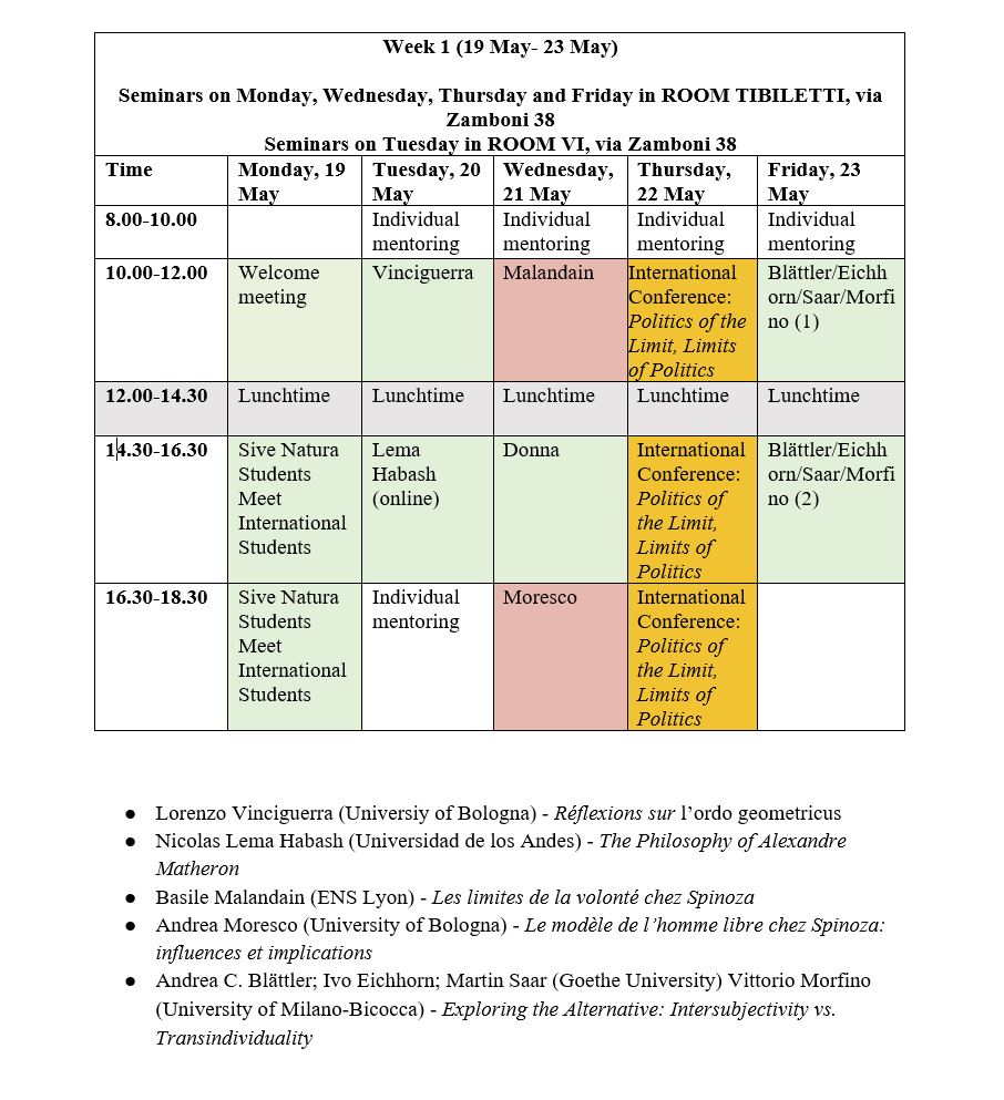The project has a long-term goal of helping to consolidate the international dimension of Spinoza studies. The participation of members of Sive Natura - International Centre for Spinozian Studies and partners from other institutions will enable the integration of a multiplicity of perspectives and methodologies that reflects the cultural richness of the continental philosophical landscape.