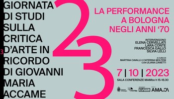 L’iniziativa avrà come soggetto la relazione tra critica d'arte, ricostruzione storiografica e arti performative, prendendo in esame il caso studio della pubblicazione La performance a Bologna negli anni '70, a cura di Uliana Zanetti (Edizioni MAMbo, 2023), per la prima volta presentata al pubblico.