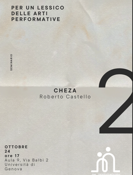 Il secondo appuntamento del ciclo di seminari "Per un Lessico delle arti performative", organizzati da MAP, Centro interateneo per la memoria delle arti performative dell'Università degli Studi di Genova, propone un incontro con Roberto Castello dal titolo Cheza.